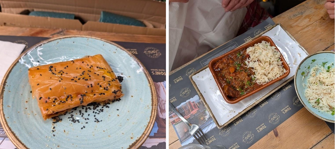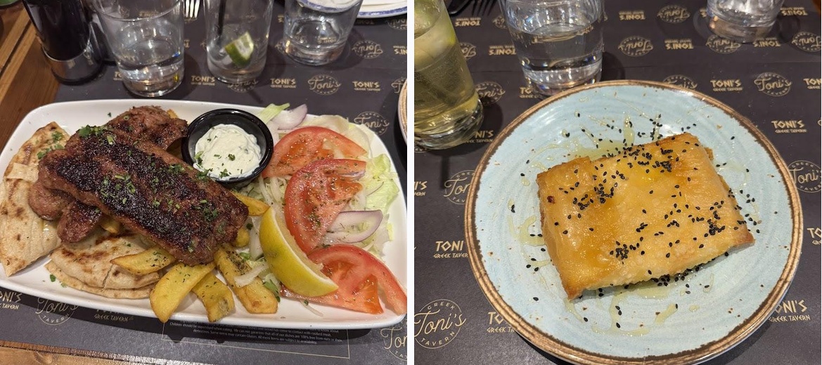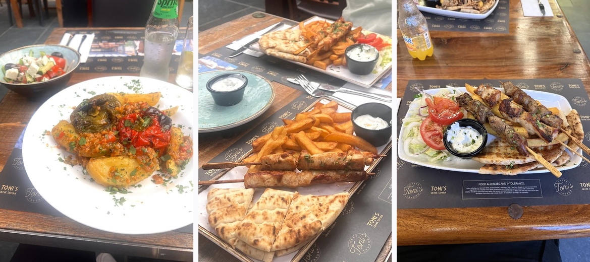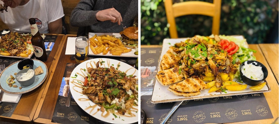10 stars out of 5 if I could! I order takeaway from their Watford Market Toni's souvlaki stand on a regular basis, and wanted to try the restaurant menu. The quality is as great as the market stand! DELICIOUS tasty food (to French standard), extra-generous portions, nice choice on the menu with genuine greek dishes, super friendly staff and nice ambiance with music (at a normal volume!) THIS is a great place for dinner, I'll come back for sure (The picture doesn't do justice to the size of the portions, they were looking even bigger IRL)